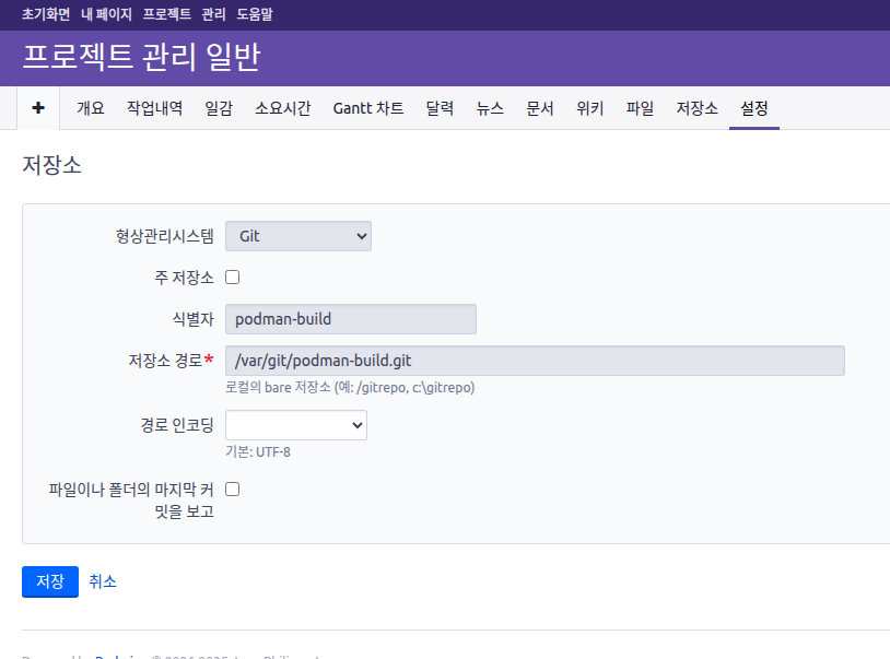 # /work/podman/redmine/git-repos 폴더로 이동